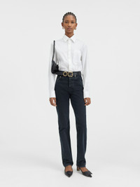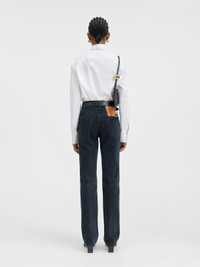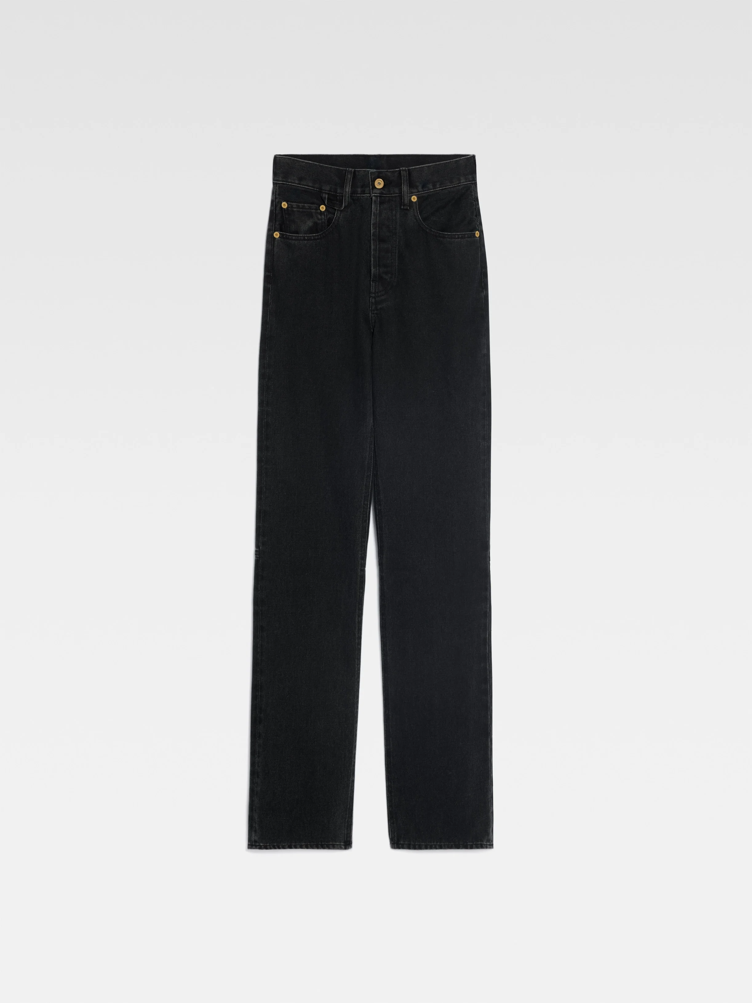 Les Classiques Straight leg jeans. - High-waisted - Over-dyed black denim - Long straight leg - “J” belt loop - Five pockets - Metal studs and rivets - Button fly - Large denim patch - Horizontal seam on the back of the knee - Large denim patch above back pocket The model is 180 cm and wears a size 24 100% Cotone Made in Portugal Ref. 241DE034-1515-990