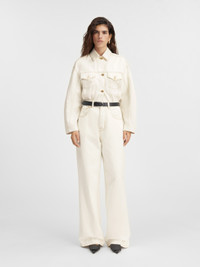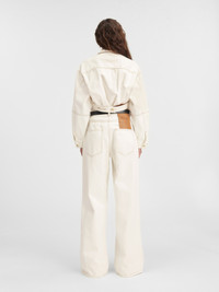 Les Classiques Oversized jeans - Mid rise - Raw denim - Long wide leg - “J” belt loop - Five pockets - Metal studs and rivets - Button fly - Large denim patch above back pocket - Contrast stitching The model is 178 cm and wears a size 24 100% Cotton Made in Italy Ref. 241DE038-1514-11C
