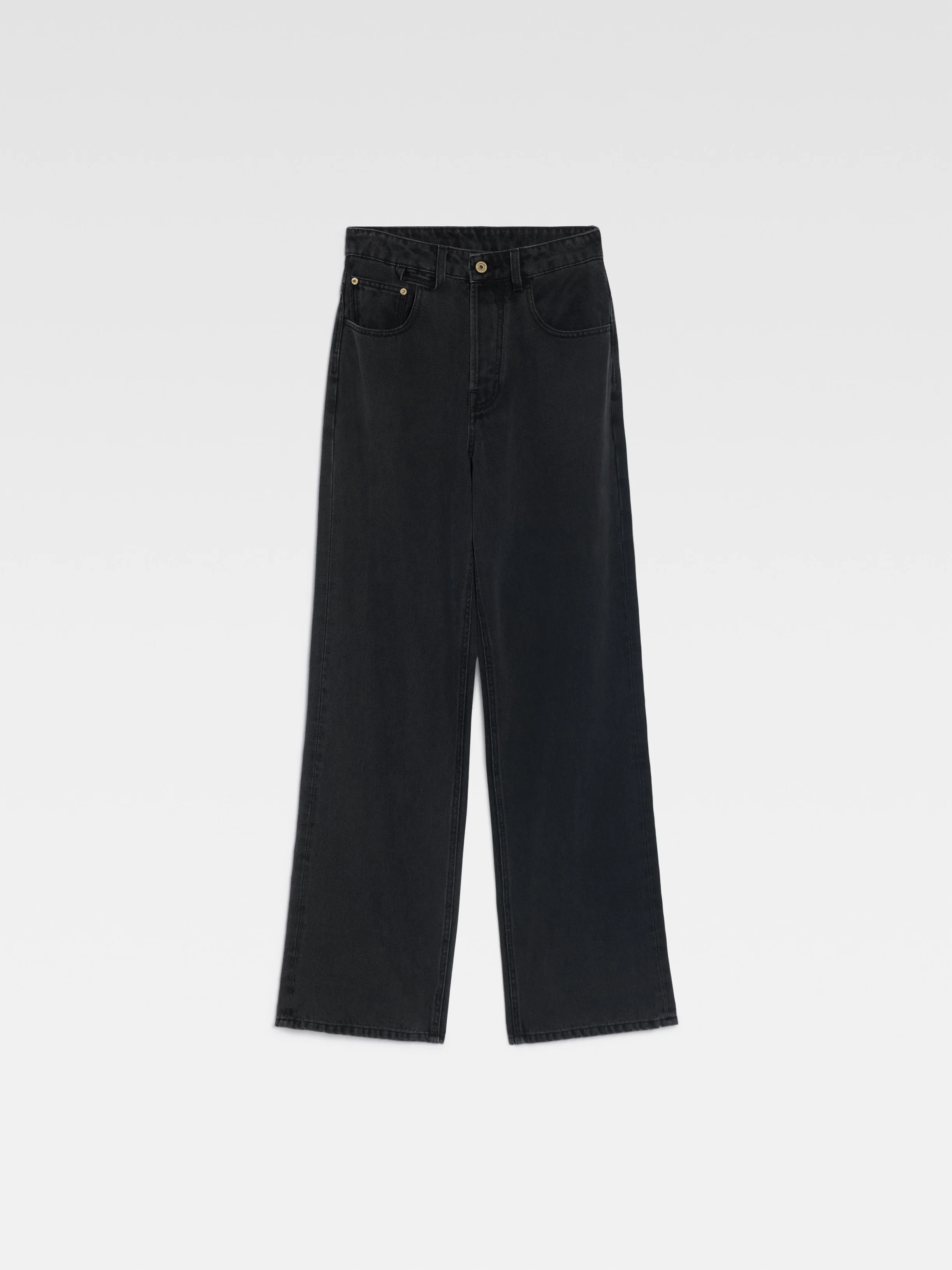 Les Classiques Oversized jeans - Mid rise - Over-dyed black denim - Long wide leg - “J” belt loop - Five pockets - Metal studs and rivets - Button fly - Large denim patch above back pocket The model is 178 cm and wears a size 24 100% Cotton Made in Italy Ref. 241DE038-1515-990
