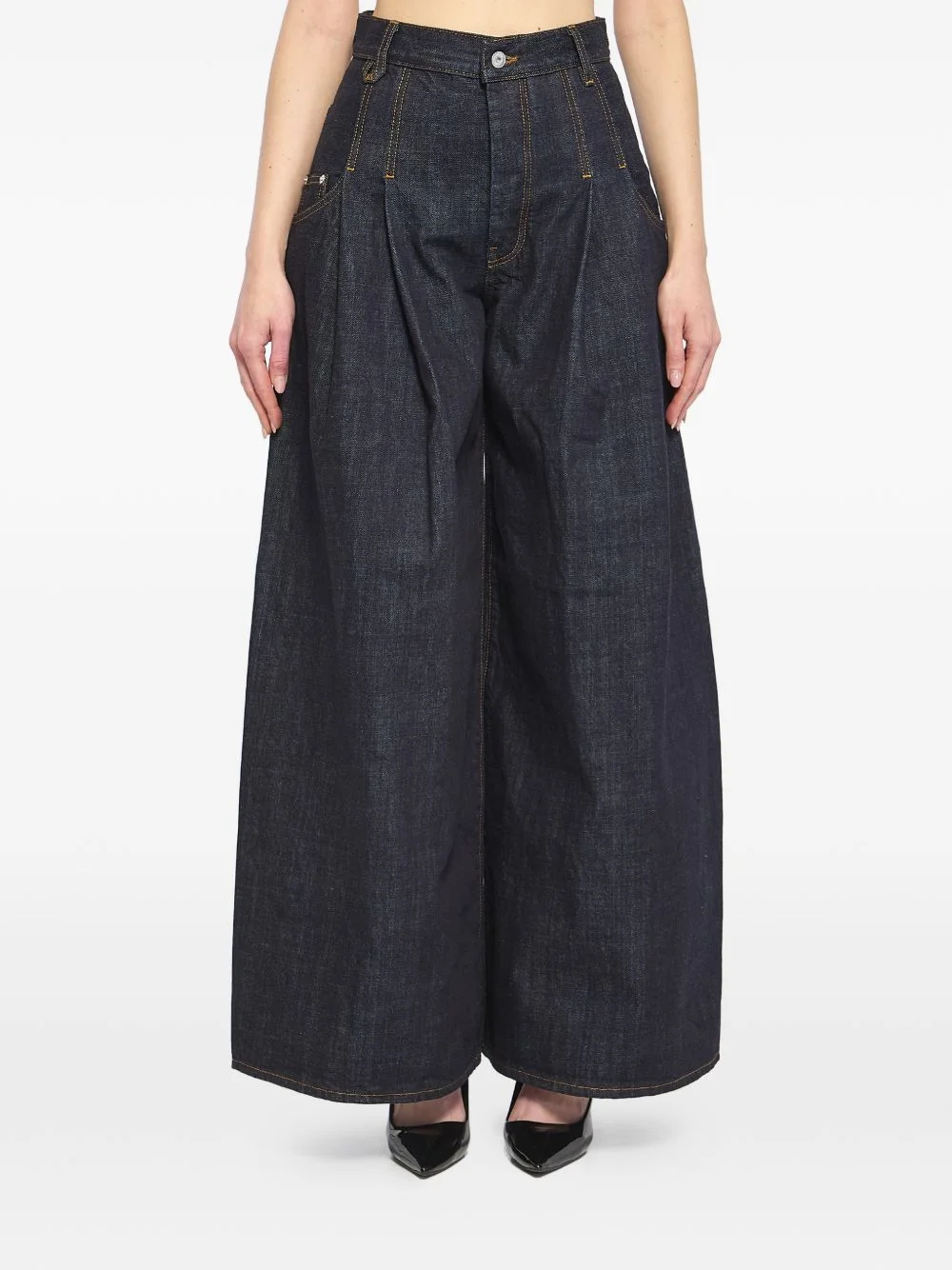 Souro de-Nimes pleated denim jeans Highlights - Dark blue - Cotton - Five pockets - Belt loops - Contrast stitching - Side embroidery Imported Composition Cotton 100% Washing instructions Read Manufacturer Guidelines