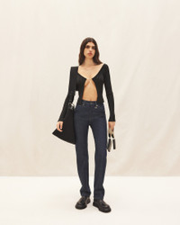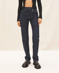 LE PAPIER Straight jeans - High-waisted - Raw denim - Contrast stitching - Hidden zip closure with engraved button - Four pockets - Paper logo denim patch on the back 100% Cotton Made in Portugal Ref.221DE002-1015-38A