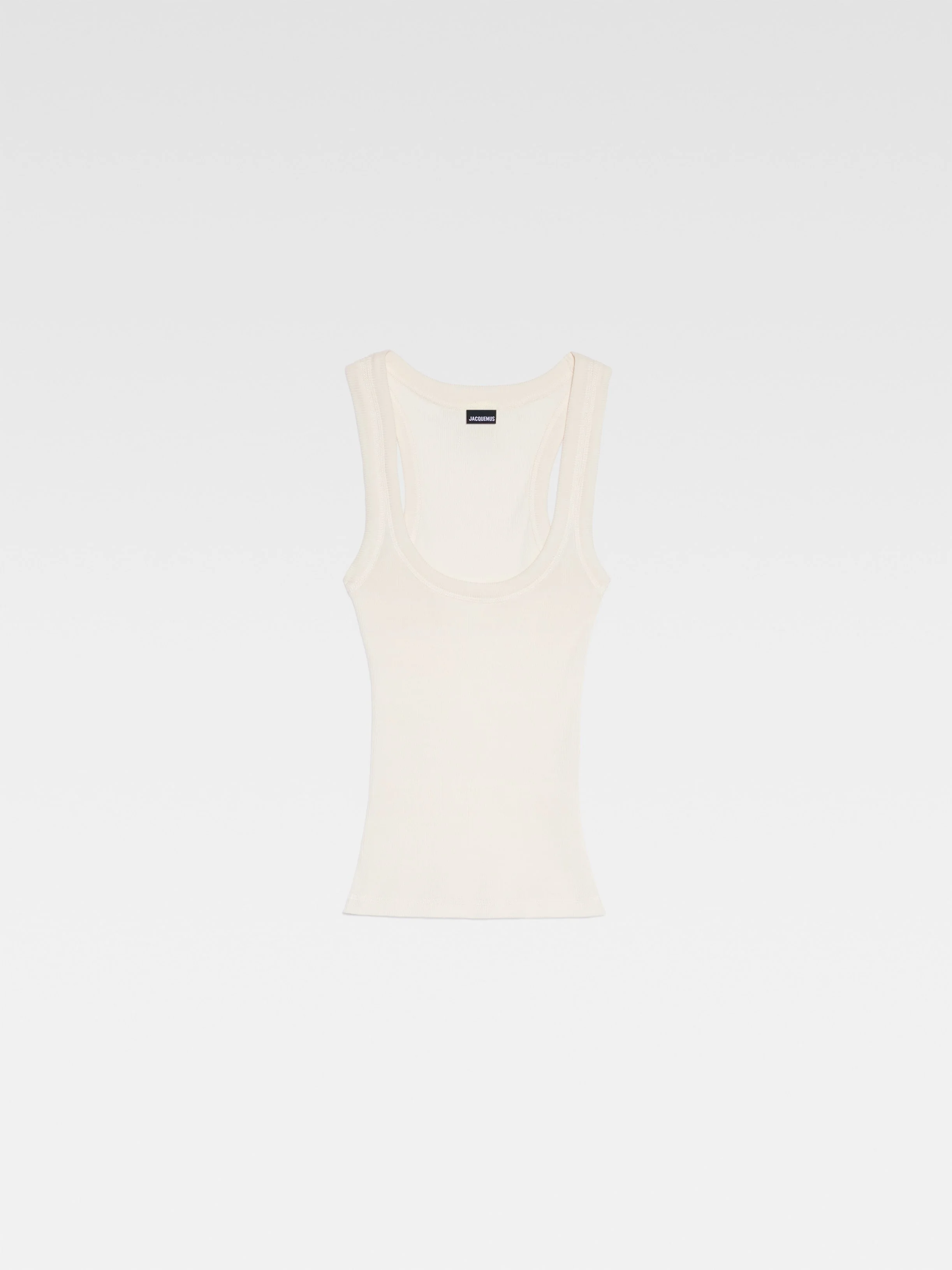 Les Classiques Second skin tank top - Fitted shape - Jersey rib - Ribbed collar and armholes - Square neckline - Embroidered grosgrain logo on the back The model is 178 cm and wears a size XXS 100% Cotton Made in Portugal Ref. 241JS158-2032-100