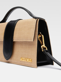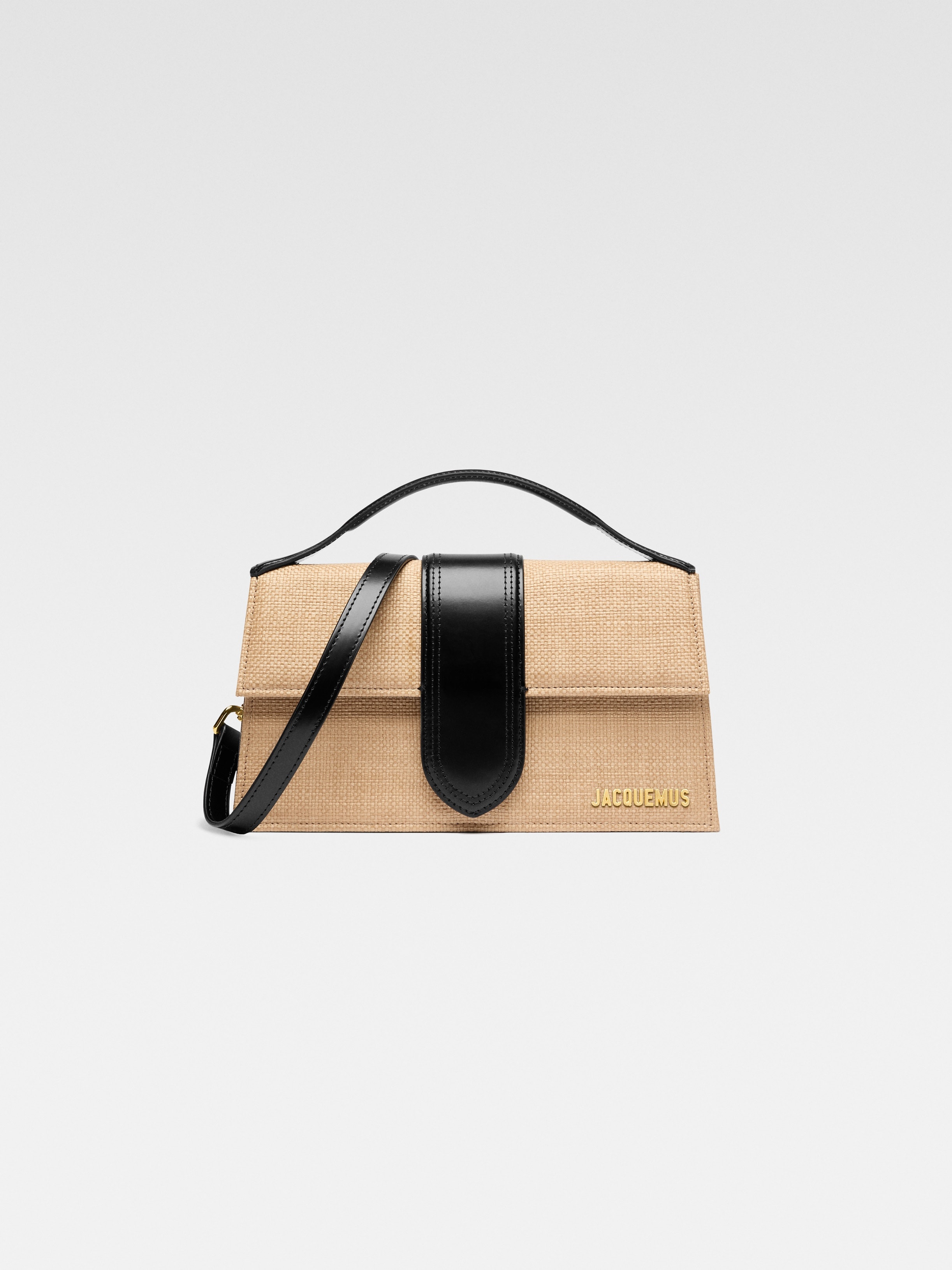 LA CASA Crossbody flap bag - Faux-raffia and smooth leather structured bag - Padded top-handle - Magnetic flap tab closure - Engraved lobster clip - Patch pocket on the back - Topstitched details - Gold-plated logo and hardware - Fully lined in cotton - Dyed edges - Height: 13cm - Length: 23.5cm 100% Polyamide / Lining: 100% Cotton Made in Italy Ref. 213BA007-3215-1FY