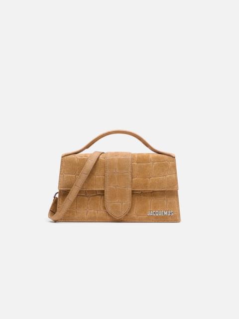 LA CASA Crossbody flap bag - Tanned hagfish leather structured bag - Padded top-handle - Magnetic flap tab closure - Long removable shoulder strap - Engraved lobster clip - Patch pocket on the back - Topstitched details - Gold-plated logo and hardware - Fully lined in cotton - Dyed edges - Height: 13cm - Length: 23.5cm 100% Hagfish / Lining: 100% Cotton Made in Italy Ref. 213BA007-3169-480