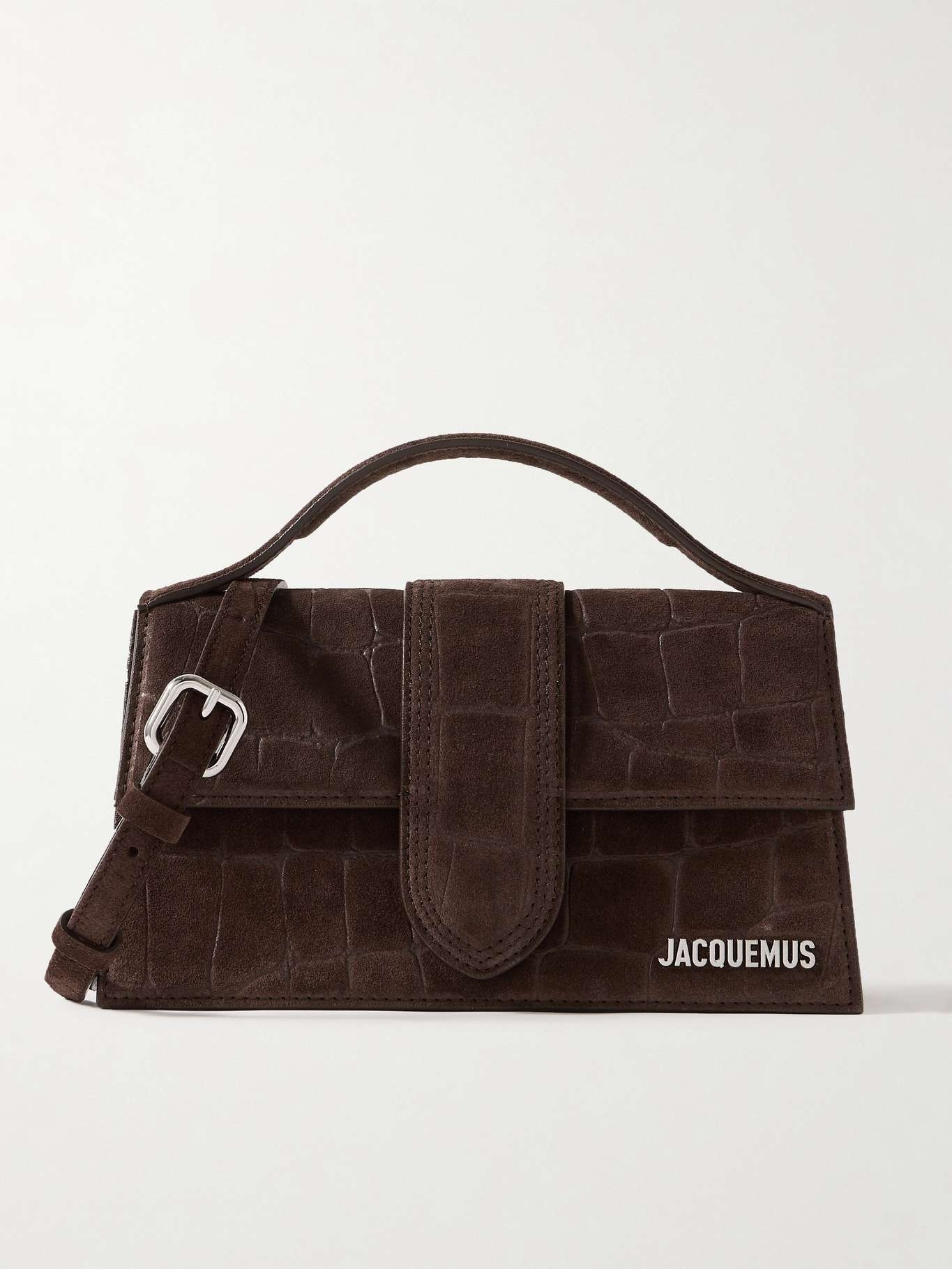 EDITORS'NOTES Jacquemus' 'The Bambino' tote has a habit of selling out, so be sure to snap up this large version before it's gone. It's crafted from croc-effect suede in the structured shape you know and love and has a detachable shoulder strap that allows you to go hands-free. There's ample room inside for your phone, cardholder and sunglasses. SIZE & FIT This item’s measurements are: - Min. Strap Length: 100cm / 39.4in - Handle Drop: 4cm / 1.6in - Depth: 7cm / 2.8in - Max. Strap Length: 118cm / 46.5in - Height: 13cm / 5.1in - Width: 23cm / 9.1in DETAILS & CARE - Dark-brown croc-effect suede (Calf) - Top handle, detachable shoulder strap - External slip pocket, internal slip pocket - Twill lining - Magnetic-fastening front flap - Comes with dust bag - Weighs approximately 1.3lbs/ 0.6kg