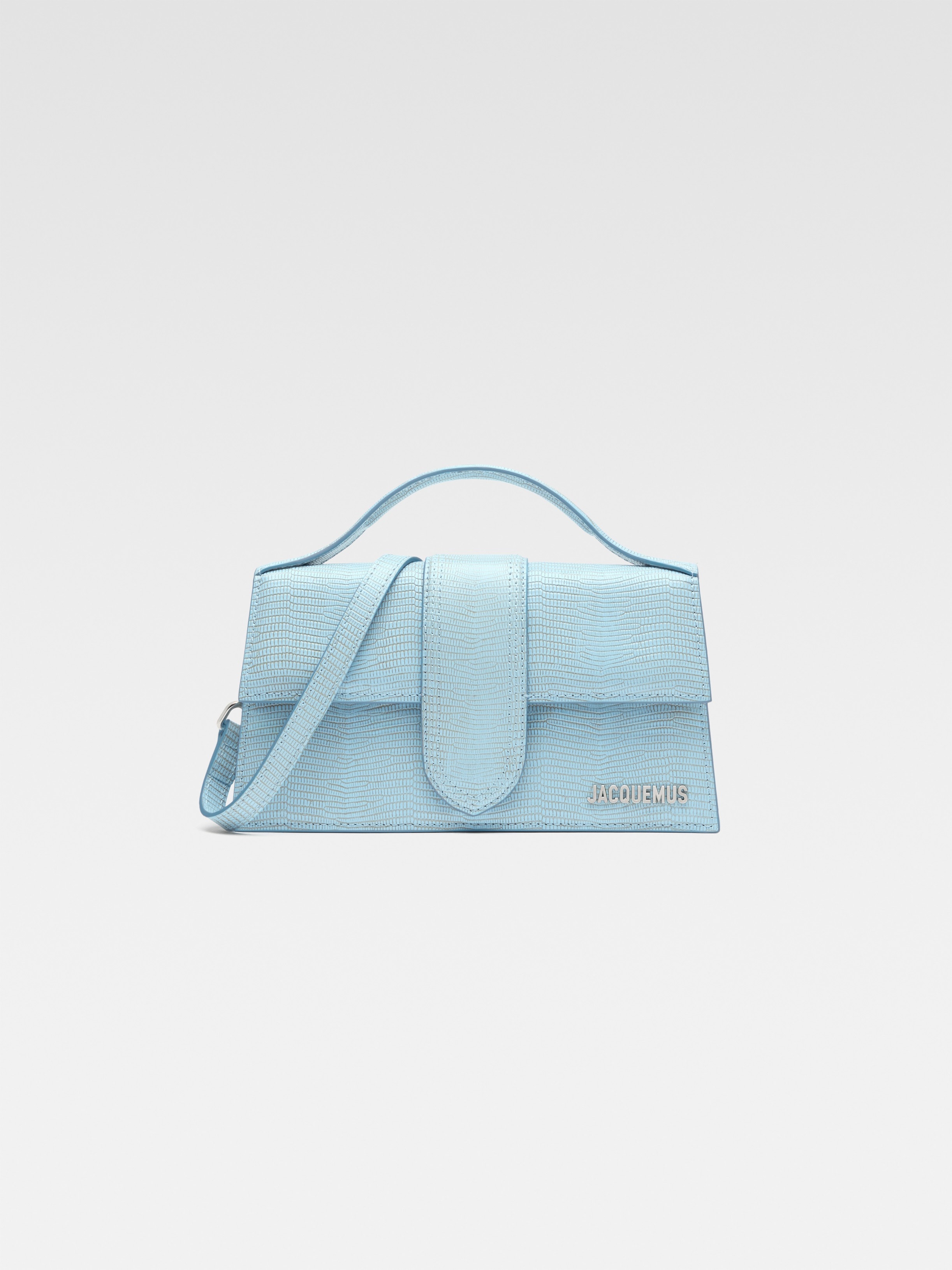 LA CROISIERE Crossbody flap bag - Lizard-embossed leather structured bag - Padded top handle - Magnetic flap tab closure - Removable and ajustable long strap - Metal engraved lobster clips - Interior leather patch pocket - Patch pocket on the back - Topstitched details - Silver metal logo and hardware - Fully lined in cotton - Dyed edges - Dimensions: 23,5 cm x 13 cm x 7 cm Each leather is unique and has been carefully selected by our team. Irregularities and variations in shade are natural. To maintain the original condition of this item, we recommend to avoid direct and over-exposure to light and contact with cosmetics, water or heat. We advise to store this item into the dust bag in a dry place. 100% Calfskin / Lining: 100% Cotton Made in Italy Ref. 213BA007-3235-320