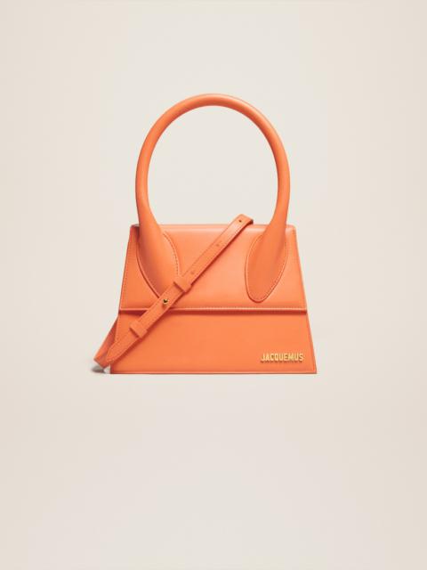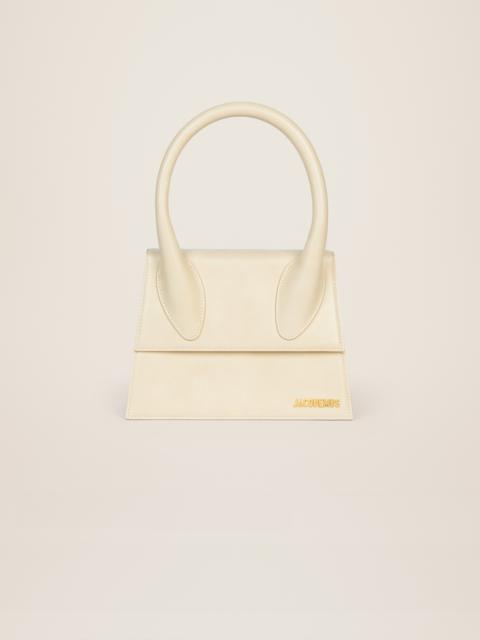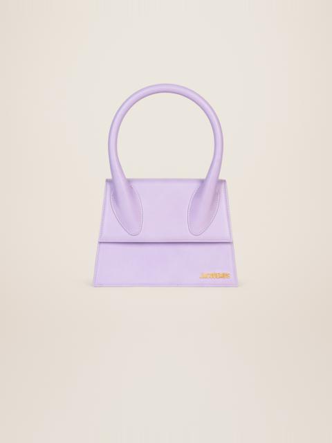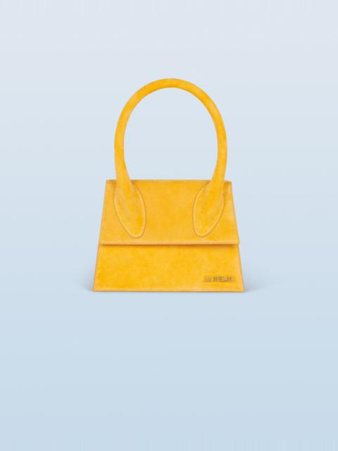 LE SPLASH Large handbag - Suede handbag - Reinforced handle - Magnetic flap closure - Adjustable, removable strap - Engraved lobster clip - Interior pocket - Gold metal logo and hardware - Fully lined - Painted edges - 22 x 18 cm Each leather is unique and has been carefully selected by our team. Its irregularities and color variations are natural. To preserve the original condition of this piece, we recommend keeping it out of the sun and away from cosmetics, water and heat sources. It can be stored in its pouch in a dry place. 100% Leather Made in Italy Ref.213BA003-3020-750