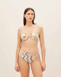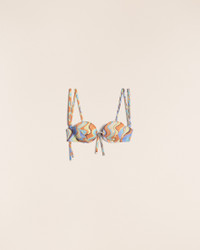 Le Raphia Double strap bikini top - Wired round shape - Double straps - Visible stitching on the cups in contrasting colors - Hook clasp on the back in metal 84% Recycled polyester - 16% Elastane Made in Portugal Ref.231SW029-2295-1DL