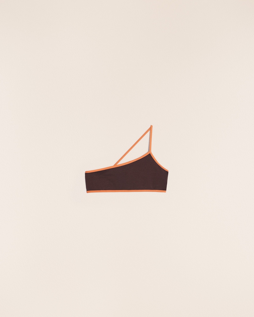 Le Raphia One shoulder bikini top - Asymmetric cut - Recycled polyester - Single strap - Contrast piping 84% Recycled polyester - 16% Elastane Made in Portugal Ref.231SW026-2133-880