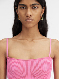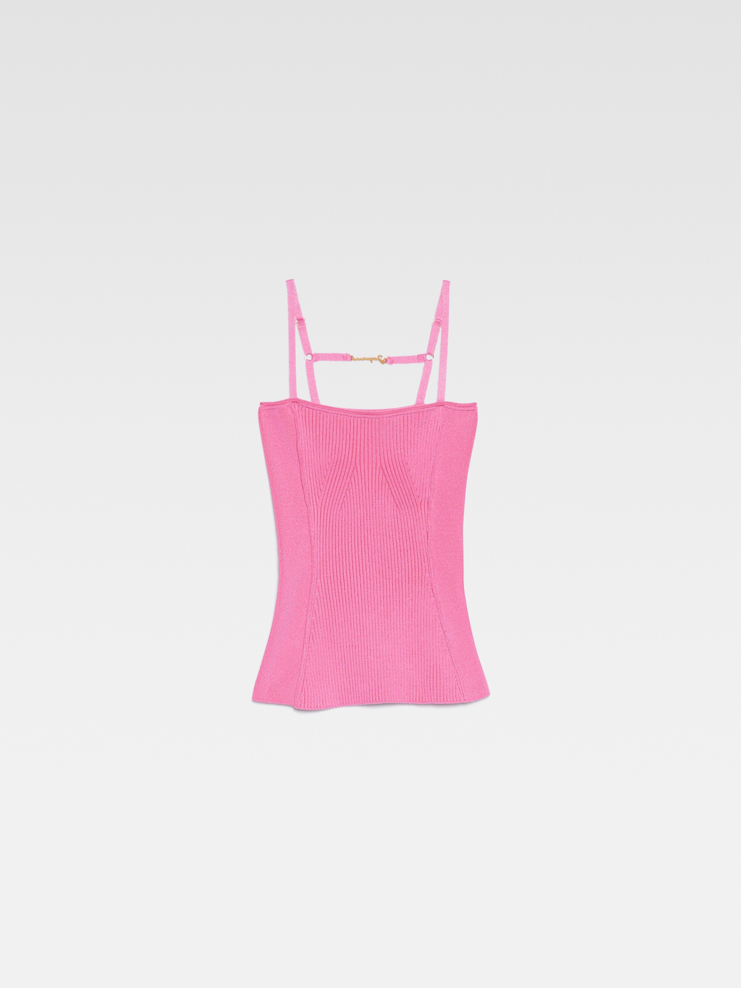 Les Classiques Lingerie tank top - Fitted shape - Rib knit - Adjustable elasticated straps - Gold metal charm logo in the back The model is 171 cm and wears a size XS 88% Viscose - 12% Polyester Made in Portugal Ref.241KN354-2355-434