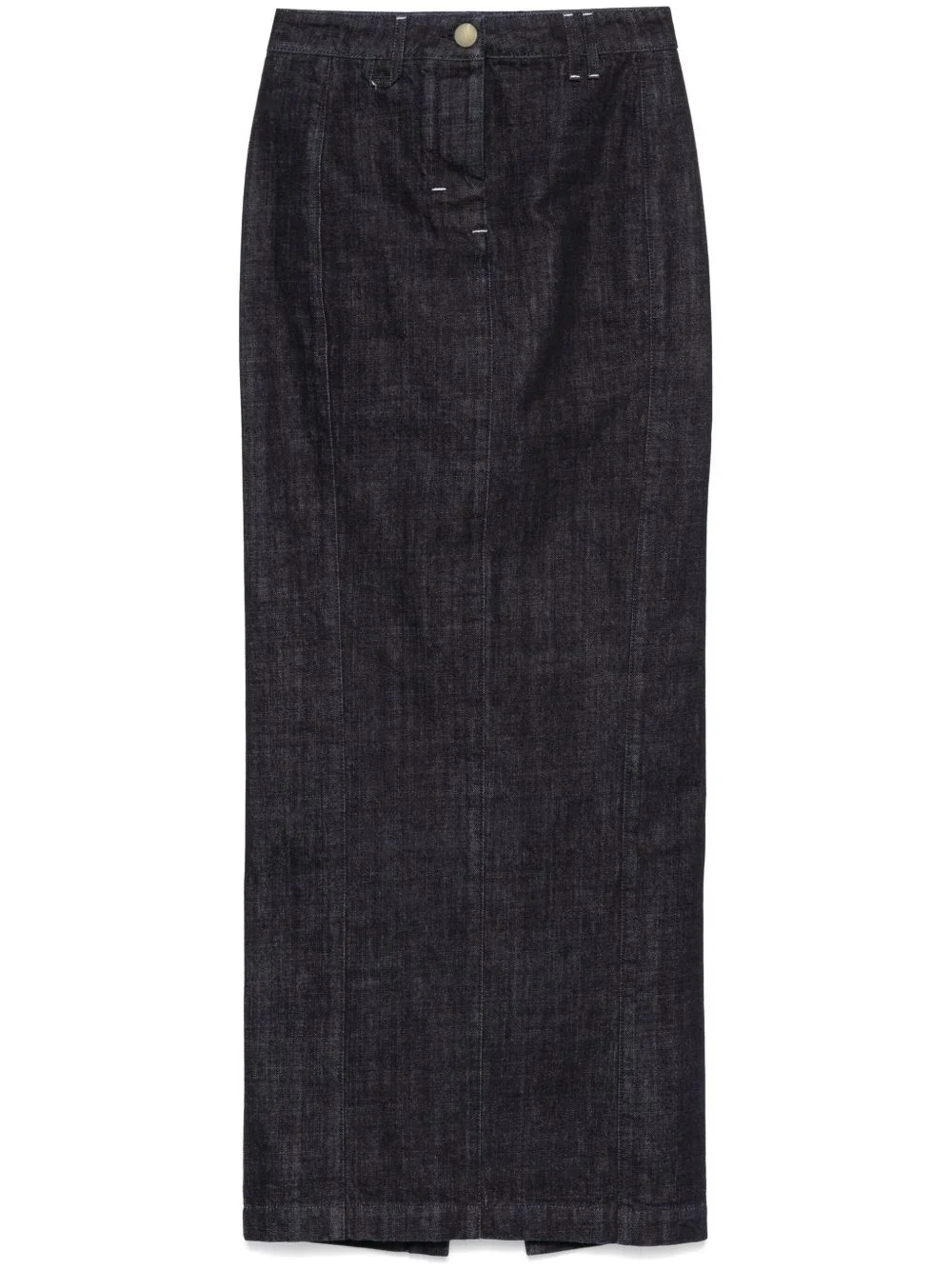 Le Jupe De-Nimes maxi skirt Highlights - Navy blue - Button fly fastening - Belt loops - Rear slit - Straight hem Made in Italy Composition Lining: Polyester 65%, Cotton 35% Outer: Cotton 100% SIZE & FIT Model measurements Height 5 ft 11 in(1.8 m) Bust/Chest 32.67 in(83 cm) Hips 36.22 in(92 cm) Waist 24.4 in(62 cm) FittingInformation This maxi-length skirt is intended to be worn just below the waist The vented hem offers movement at the rear Sturdy and hard-wearing, this denim piece offers no stretch