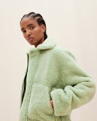 LE PAPIER Oversized shearling coat - Round, oversized fit - Washed shearling - Foldable collar - Hidden zip closure with snap button tab - Kangaroo pockets - Zipped sleeves 100% Lambskin Made in France Ref.223CO006-1106-510