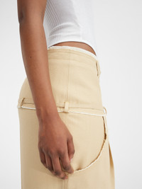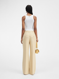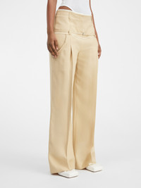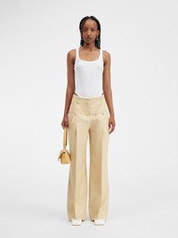 LE CHOUCHOU Belted wide-leg pants - Low rise - Wide, straight cut - Viscose - Hidden zip and button closure - Removable thin buckled belt and belt loops - Layered, piped finishings - Low side-seam pockets - Pressed creases The model is 175 cm and wears a size 34. 100% Viscose / Lining : 97% Cotton - 3% Elastane Made in France Ref.233PA053-1359-150