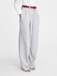 LA CASA Pleated suit pants - Loose, mid-rise cut - Neoprene bonded jersey - Belt loops with "J" loop on back - Hidden zip closure with hook and button - Side-seam pockets - Pressed pleats - Wide legs - Back welt pockets The model is 178cm and wears a size 34 35% Polyester - 34% Cotton - 29% Virgin wool - 2% Elastane Made in Bulgaria Ref. 243PA116-1660-910