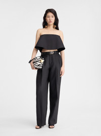 LA CASA Pleated suit pants - Loose, mid-rise cut - Smooth silk-wool blend - Belt loops with "J" loop on back - Hidden zip closure with hook and button - Side-seam pockets - Pressed pleats - Wide legs - Back welt pockets The model is 178cm and wears a size 34 71% Virgin wool - 29% Silk / Lining: 97% Cotton - 3% Elastane Made in Bulgaria Ref. 243PA116-1644-990