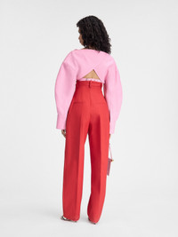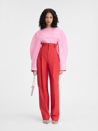 LA CASA Ultra high-waisted suit pants - Loose, extra high-rise cut - Lightweight cotton poplin - Belt loops with "J" loop on back - Hidden zip closure with hook and button - Slant pockets - Pressed pleats - Wide legs - Back welt pockets The model is 178cm and wears a size 34 96% Cotton - 4% Elastane / Lining: 97% Cotton - 3% Elastane Made in Bulgaria Ref.243PA117-1658-470