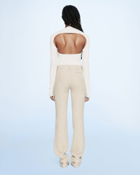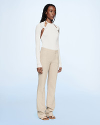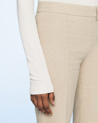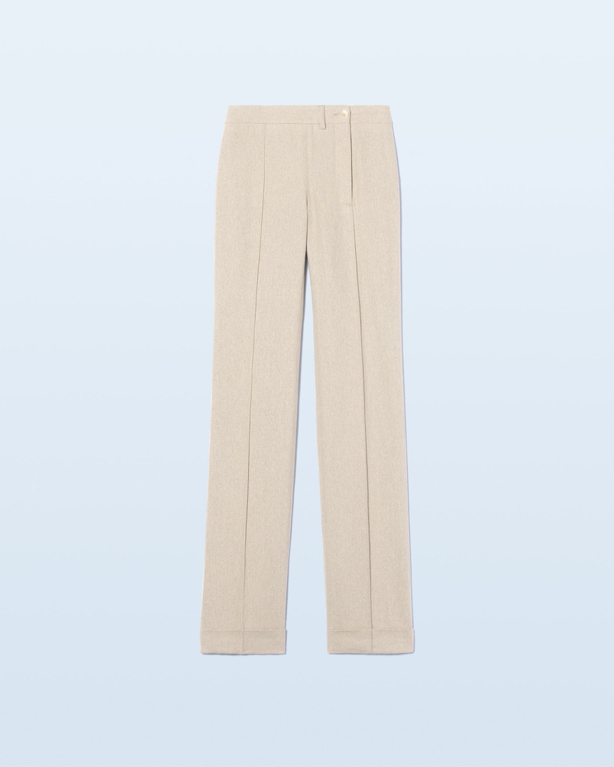 LE SPLASH Asymmetric suit pants - Straight fit - High-waisted with side buttoning - Linen - Belt loops - Asymmetric hidden zip closure with hook and button - Stitched pleat - Jetted back pocket - Cuffed hem The model is 178 cm and wears a size 34 100% Linen Made in Romania Ref.221PA012-1029-150