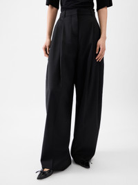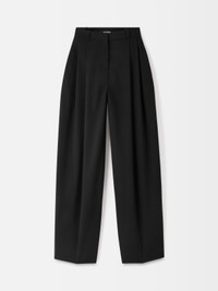 Pleated pants - High-rise - Fluid tailoring wool - Waistband with belt loops - Zip fly with hook and button - Slash pockets - Double pressed-pleats - Wide curved leg - “J” belt loops in the back - Back welt pockets The model is 177cm and wears a size 34 100% Virgin Wool / Lining: 55% Cotton - 45% Polyester Made in Bulgaria Ref. PAW00615AW00637990