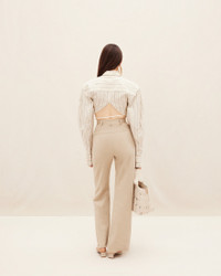 LE PAPIER High-waisted flare pants - High-waisted - Linen canvas - Stretch wool-viscose - Flared leg with loose pleats - Hidden zip closure with hook and button 100% Linen Made in Bulgaria Ref.211PA003-1029-150
