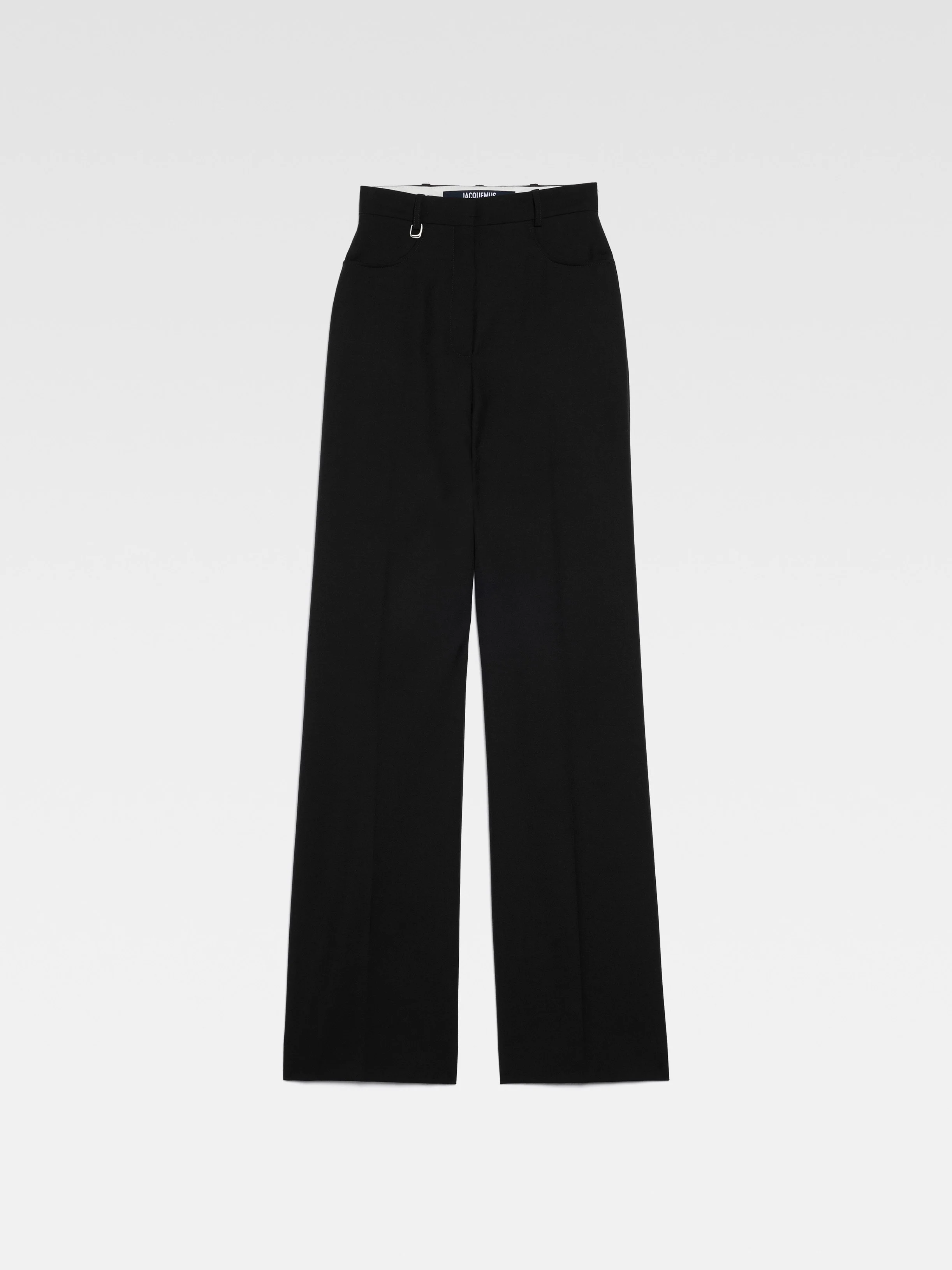 LA CASA High-waisted flare pants - High-waisted - Linen canvas - Stretch wool-viscose - Flared leg with loose pleats - Hidden zip closure with hook and button The model is 172 cm and wears a size 34 100% Virgin wool Made in Bulgaria Ref. 243PA003-1333-990