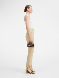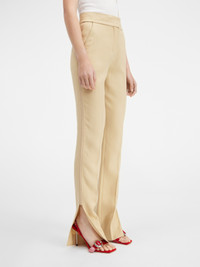 LE CHOUCHOU Slit pants - High-waisted - Viscose - Hidden zip closure with hook and button - Side pockets - Ribbon insert along right side - Piped back pockets - Slit hem The model is 175 cm and wears a size 34. 100% Viscose / Lining : 97% Cotton - 3% Elastane Made in France Ref.231PA038-1359-150