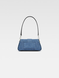 LES SCULPTURES Mini puffed denim bag - Soft padded denim bag - Two straps to carry on the shoulder or across the chest - Magnetic flap tab closure - Engraved lobster clip - Back patch pocket - Leather piping - Interior pocket - Silver metal logo and hardware - Fully lined in cotton - Height 11 cm - Length 20.5 cm 100% Calfskin / Lining: 100% Cotton Made in Italy Ref.241BA388-3176-330