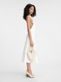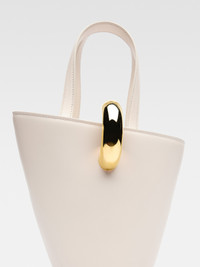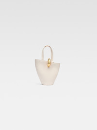 LA CASA Asymmetric mini bucket bag - Smooth leather bucket bag - Removable cross-body strap - Ring clasp in gold-plated metal - Double top-handles - Interior zipped pocket - Topstitched details - Gold-plated logo and hardware - Fully lined in cotton - Dyed edges - Height: 24cm - Length: 24cm - Width: 10cm 100% Cow leather / Lining: 100% Cotton Made in Italy Ref. 243BA389-3173-115