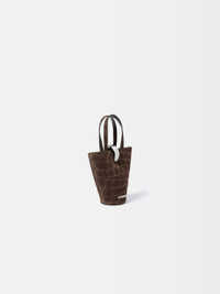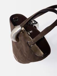 Small asymmetric bucket bag - Asymmetric bucket bag in soft suede - Double top-handles - Removable cross-body strap - Silver metal ring clasp - Interior zipped pocket - Topstitched details - Silver metal logo and hardware - Fully lined in cotton - Dyed-edges - 9,4 in x 9,4 in x 3,9 in Each leather is unique and has been carefully selected by our team. To maintain the original condition of this item, we recommend to avoid direct and over-exposure to light and contact with cosmetics, water or heat. We advise to store this item into the dust bag in a dry place. 100% Calf Leather / Lining: 100% Cotton Made in Italy Ref. BAW00389AC07A09880