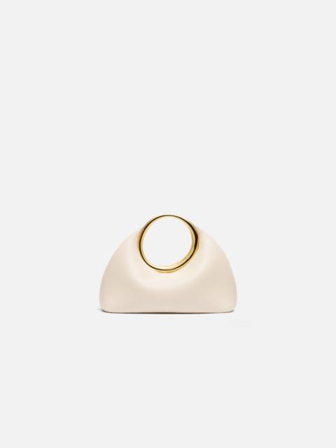 Mini ring handbag - Nappa leather handbag - Organic shape with integrated engraved ring handle - Magnetic closure - Flat bottom - Fully lined in cotton - Height 16.5 cm - Length 22.5 cm - Width 8.5 cm 100% Calfskin Made in Italy Ref. BAW00395AC27L14115