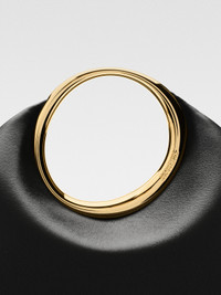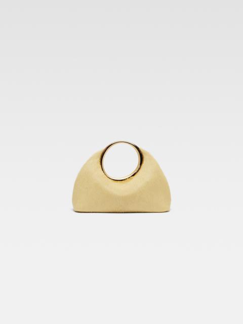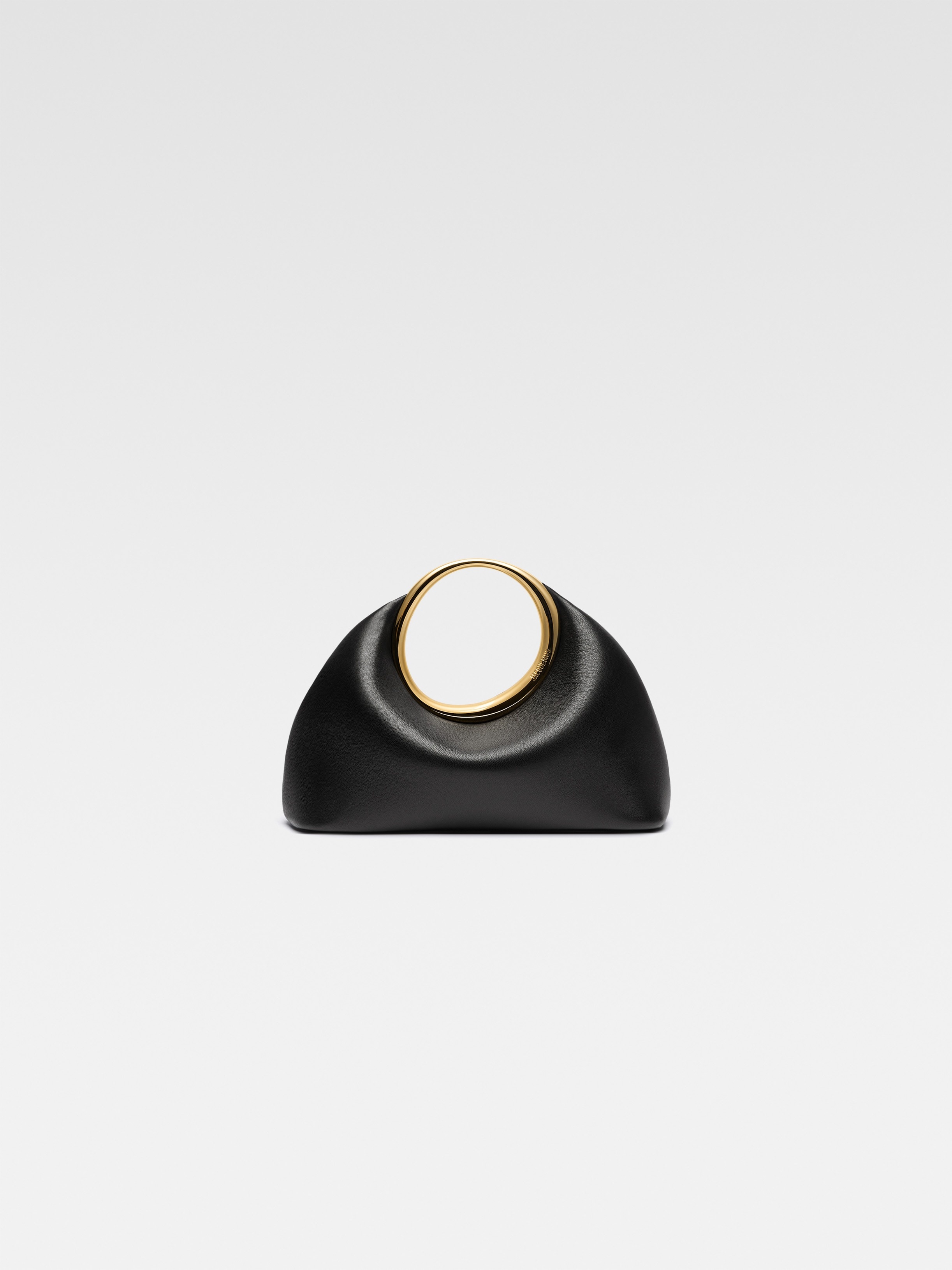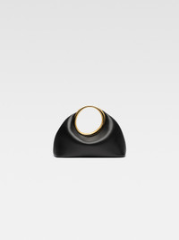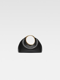 LES SCULPTURES Mini ring handbag - Nappa leather handbag - Organic shape with integrated engraved ring handle - Magnetic closure - Flat bottom - Fully lined in cotton - Height 16.5 cm - Length 22.5 cm - Width 8.5 cm 100% Lambskin / Lining: 100% Cotton Made in Italy Ref.241BA395-3171-990