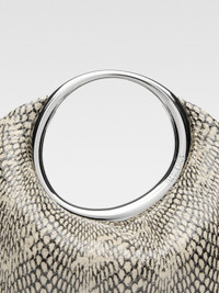 LA CROISIERE Mini ring handbag - Cobra-embossed goat leather handbag - Organic shape with integrated engraved ring handle - Magnetic closure - Flat bottom - Fully lined in cotton - Height 16.5 cm - Length 22.5 cm - Width 8.5 cm Each leather is unique and has been carefully selected by our team. Irregularities and variations in shade are natural. To maintain the original condition of this item, we recommend to avoid direct and over-exposure to light and contact with cosmetics, water or heat. We advise to store this item into the dust bag in a dry place. 100% Goat leather / Lining: 100% Cotton Made in Italy Ref. 241BA395-3233-150