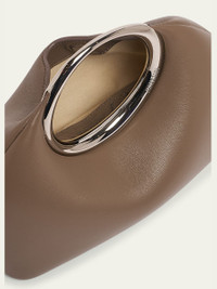 Jacquemus "Le Petit Calino" top handle bag in leather Metal ring clasp top handle Open top with magnetic closure Lining: Cotton Approx. 8.3"H x 12.9"W x 4.9"D Made in Italy