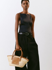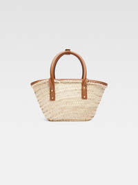 Les Classiques Mini beach basket bag - Handwoven basket bag with smooth leather details - Soft construction - Top handle - Long removable cross-body strap - Wrapped edges - Front flap pocket - Gold metal logo and hardware - 34 x 17 cm Sizes and shapes of our basket bags may slightly differ. 100% Palm and cowskin Made in Morocco Ref. BAW00044AC01C04811