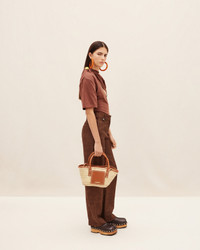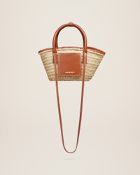 Les Classiques Mini beach basket bag - Handwoven basket bag with smooth leather details - Soft construction - Top handle - Long removable cross-body strap - Wrapped edges - Front flap pocket - Gold metal logo and hardware - 34 x 17 cm Sizes and shapes of our basket bags may slightly differ. 100% Palm and cowskin Made in Morocco Ref. 223BA044-3072-811