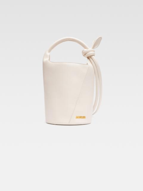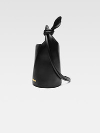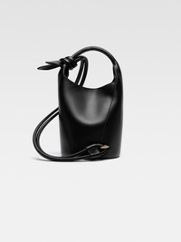 Les Classiques Mini knotted bucket bag - Smooth leather bucket bag - Round top handle - Snap button closure - Knotted shoulder strap on the side - Gold metal logo and hardware - Metal ring - Interior zipper pocket - Fully lined in cotton - Height 39 cm - Length 22 cm - Width 22 cm 100% Cowskin / Lining: 100% Cotton Made in Italy Ref. 245BA366-3173-990