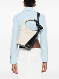 Le Petit Tourni bucket bag Highlights - Black - Light grey - Calf leather - Canvas - Smooth grain - Gold-tone logo lettering - Knot detailing - Open top - Concealed press-stud fastening - Two rolled shoulder straps - Single rolled top handle - Hard bucket body - Main compartment - Debossed internal logo - Internal zip-fastening pocket - Internal card slot - Metal feet Made in Italy Composition Outer: Calf Leather 100%, Cotton 44%, Linen/Flax 44%, Acrylic 12% Lining: Cotton 100% SIZE & FIT Model measurements Height 5 ft 10 in(1.78 m) Bust/Chest 31.49 in(80 cm) Hips 37 in(94 cm) Waist 23.62 in(60 cm) Measurement DEPTH 9.44 in(24 cm) HANDLE 4.33 in(11 cm) HEIGHT 9.44 in(24 cm) STRAP 33.46 in(85 cm) WIDTH 7.87 in(20 cm)