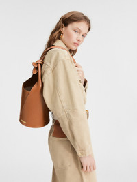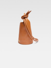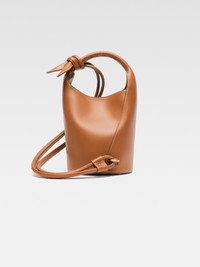 Les Classiques Mini knotted bucket bag - Smooth leather bucket bag - Round top handle - Snap button closure - Knotted shoulder strap on the side - Gold metal logo and hardware - Metal ring - Interior zipper pocket - Fully lined in cotton - Height 39 cm - Length 22 cm - Width 22 cm 100% Cowskin / Lining: 100% Cotton Made in Italy Ref. 245BA366-3173-811