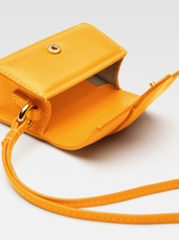 LES SCULPTURES Mini flap AirPods case - Mini Bambino bag in smooth leather - Snap tab closure - Leather wrist strap - Gold metal logo and hardware - Fully lined in cotton - Height: 6 cm - Length: 9 cm - Width: 3.80 cm 100% Cowskin / Lining: 100% Cotton Made in Italy Ref.233SL117-3060-780