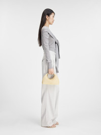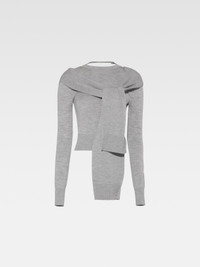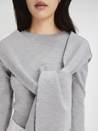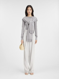 LES SCULPTURES Cardigan sweater - Fitted shape - Merino wool - Ribbed collar, cuffs and hem - Crew neck with adjustable strap in the back - Trompe l’oeil wrapped cardigan sleeves - Mother-of-pearl buttons The model is 178 cm and wears a size XS 100% Wool Made in Romania Ref.241KN447-2323-950