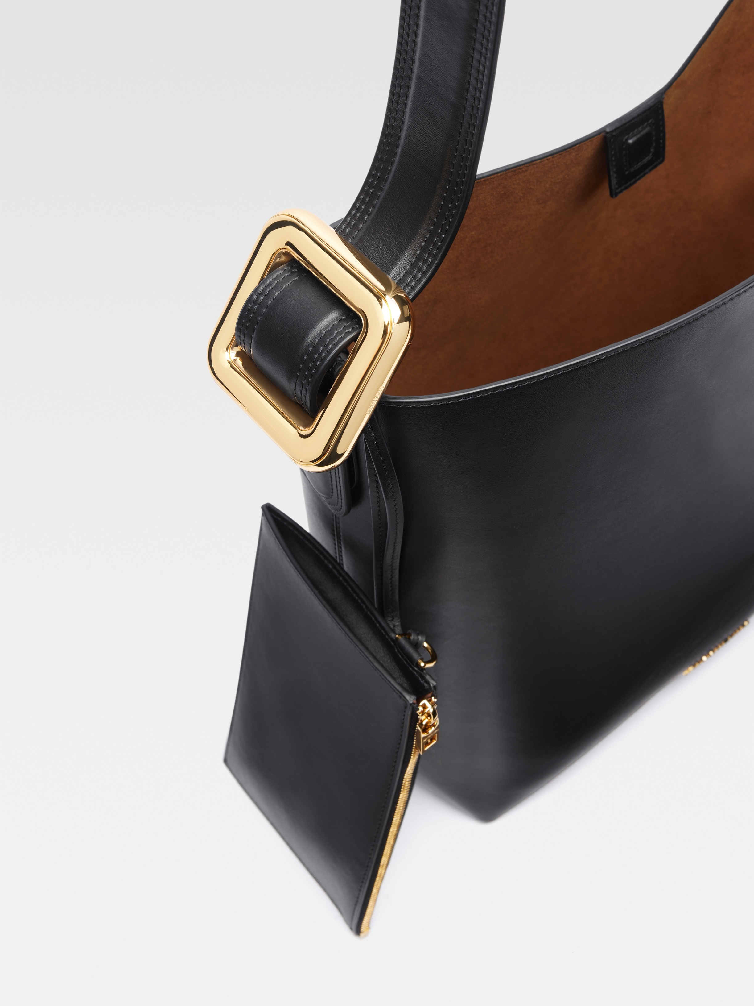 LE CHOUCHOU Buckled bucket bag - Smooth leather shoulder bag - Adjustable top-handle with gold metal buckle - Magnetic interior closure - Contrast stitching - Detachable interior zipped pouch - Gold metal logo and hardware - 40 x 32.5 cm Each leather is unique and has been carefully selected by our team. Irregularities and variations in shade are natural. To maintain the original condition of this item, we recommend to avoid direct and over-exposure to light and contact with cosmetics, water or heat. We advise to store this item into the dust bag in a dry place. 100% Cow leather / Lining : 60% Polyamide - 40% Polyurethane Made in Italy Ref.233BA354-3143-990