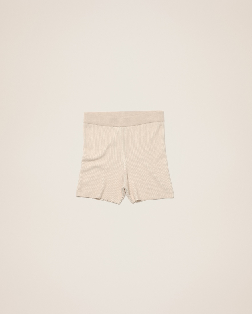 LE SPLASH Knit bike shorts - Fitted shape - Two-tone plated rib knit - High-waisted with an elasticated waistband The model is 178 cm and wears a size 34 80% Viscose - 10% Polyamide/Nylon - 10% Polyester Made in Portugal Ref.213KN004-2060-150