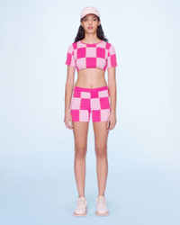 LE SPLASH Checkerboard shorts - Cycling shorts - Checkered openwork knit - High elasticated waist The model is 177 cm and wears a size 34 55% Cotton - 40% Polyamide/Nylon - 5% Elastane Made in Italy Ref.221KN061-2045-043