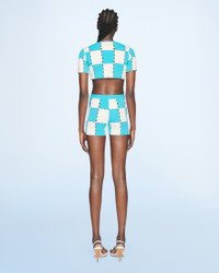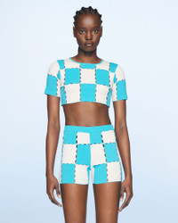 LE SPLASH Checkerboard shorts - Cycling shorts - Checkered openwork knit - High elasticated waist The model is 177 cm and wears a size 34 55% Cotton - 40% Polyamide/Nylon - 5% Elastane Made in Italy Ref.221KN061-2045-030