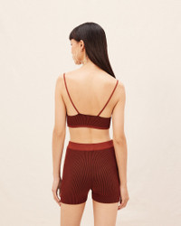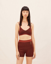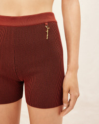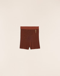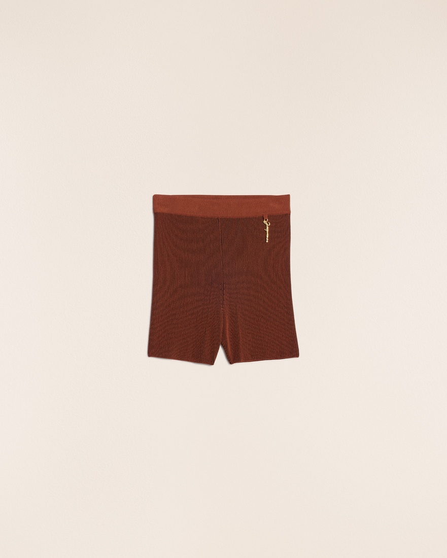 Le Raphia Charm logo knit shorts - Fitted bike shorts - Plated rib knit - High elasticated waist - Gold metal charm logo 90% Viscose - 10% Polyamide - 10% Polyester Made in Portugal Ref.231KN503-2060-850