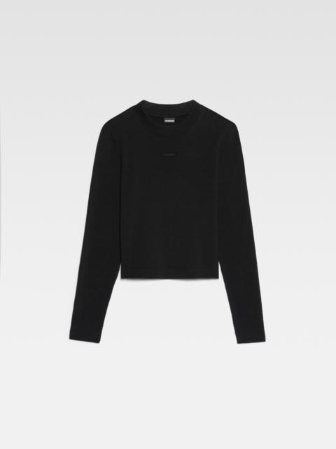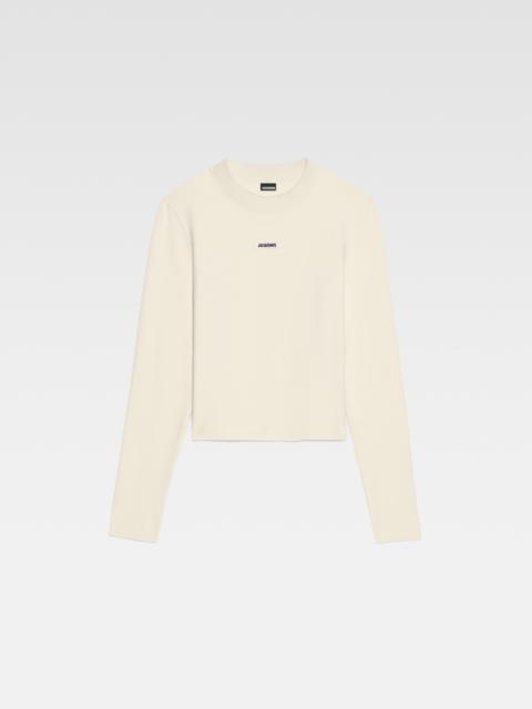 Grosgrain logo long sleeve t-shirt - Fitted shape - Stretch cotton - Ribbed crew neck - Embroidered grosgrain logo on chest The model is 180 cm and wears a size XS 94% Cotton - 6% Elastane Made in Portugal Ref. TSW00155AJ00124990