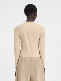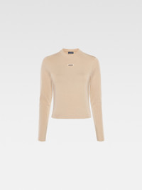 LA CASA Grosgrain logo long sleeve t-shirt - Slightly cropped, fitted shape - Stretch cotton - Ribbed crew neck - Embroidered grosgrain logo on chest The model is 177cm and wears a size XS 94% Coton - 6% Elastane Made in Portugal Ref. 241JS155-2031-151
