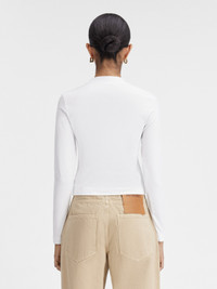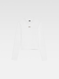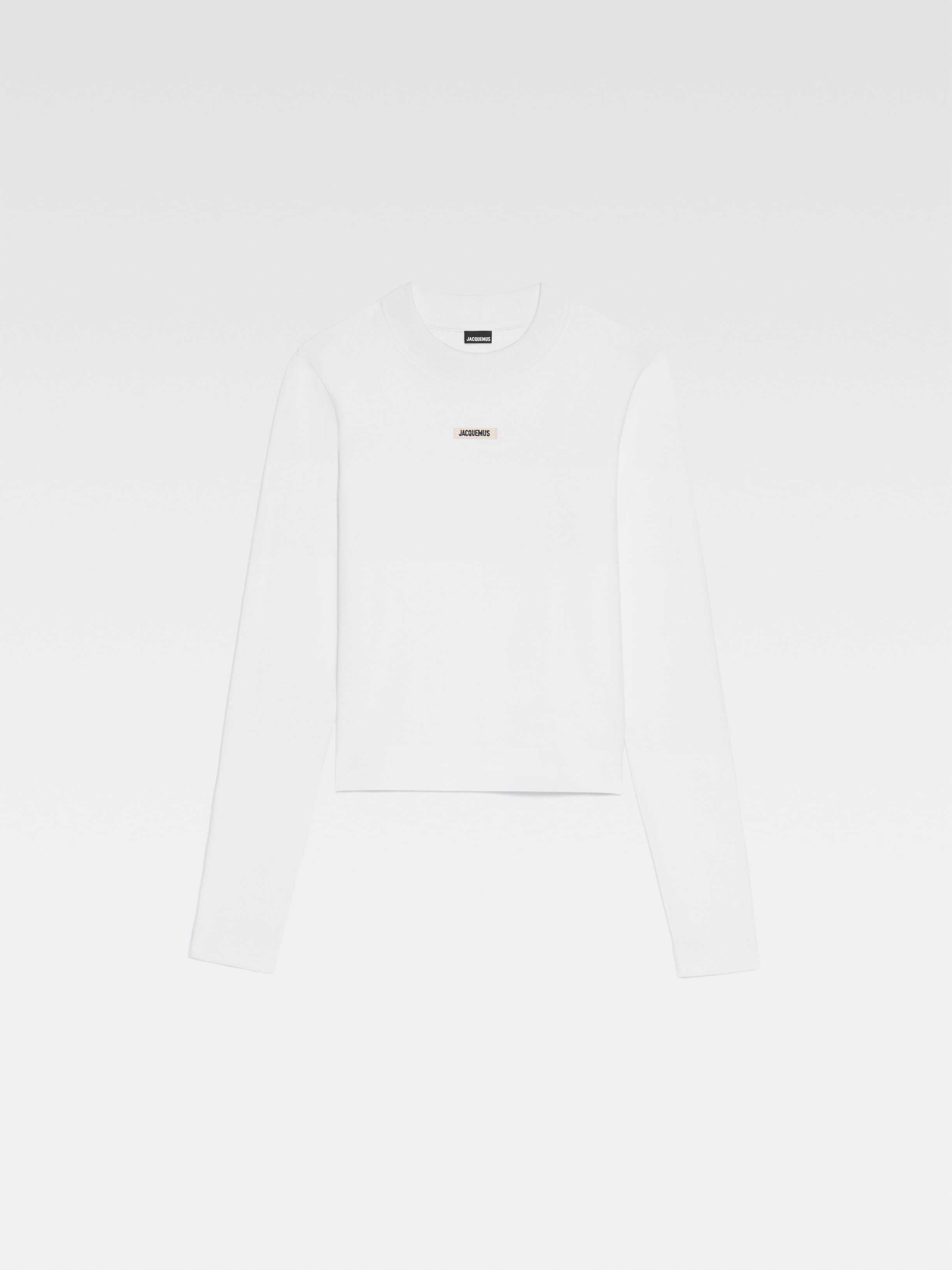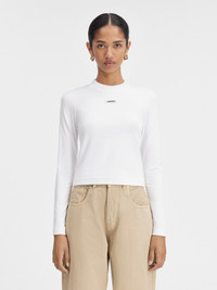 Les Classiques Grosgrain logo long sleeve t-shirt - Fitted shape - Stretch cotton - Ribbed crew neck - Embroidered grosgrain logo on chest The model is 178 cm and wears a size XS 94% Cotton - 6% Elastane Made in Portugal Ref. 241JS155-2031-100