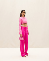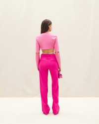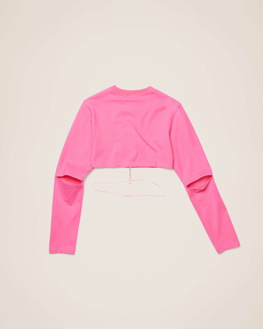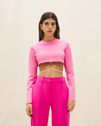 LE PAPIER Charm logo crop top - Cropped fit - Ribbed crew neck - Elasticated waist strap with charm logo - Long sleeves with slit elbows 100% Cotton Made in Portugal Ref.223JS031-2014-430