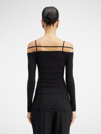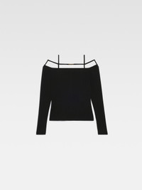 Les Classiques Long sleeve lingerie t-shirt - Fitted shape with open neckline - Transparent jersey - Contrast elasticated straps - Gold metal charm logo The model is 179 cm and wears a size S. 94% Cotton - 6% Elastane Made in Portugal Ref. 233JS165-2313-990