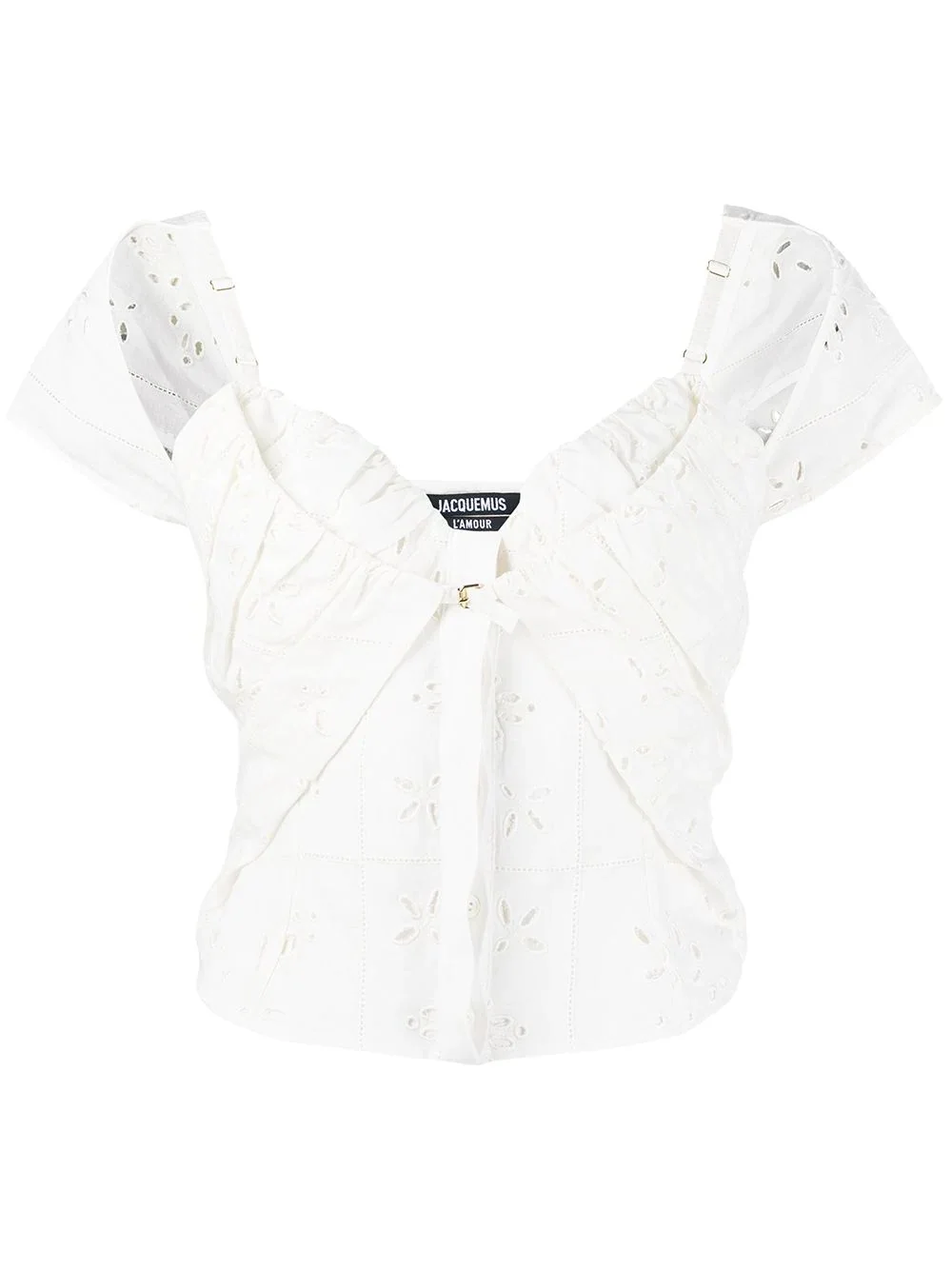 Le Tovallo blouse Bright days call for light looks. So what better choice than this Le Tovallo blouse from Jacquemus that is designed from a breathable linen blend and features an open back design. The definiton of a fresh look lies here. Imported Composition Outer: Cotton 100%, Linen/Flax 55%, Viscose 45% Lining: Cotton 100% SIZE & FIT Model measurements Height 5 ft 11 in(1.8 m) Bust/Chest 31.49 in(80 cm) Hips 35.82 in(91 cm) Waist 24.8 in(63 cm) FittingInformation This piece fits true to size. We recommend you get your regular size Cut for a slim fit Made with a mid-weight non-stretch fabric Washing instructions Hand Wash